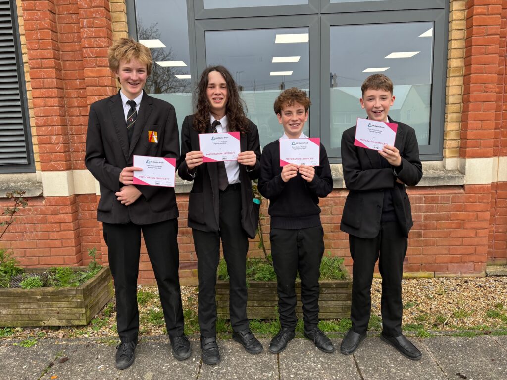 On Monday 9th March, four students from Year 8 and Year 9 went to Pate’s Grammar School to take part in the UK Mathematics Trust ‘Team Maths Challenge’. It was an all-day event where the students tackled four rounds of mathematical problems, including a mind-bending ‘cross-number’ and a frantic relay round!